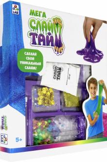 Набор содержит: прозрачный клей, белый клей, активатор для слайма, краски, пакетик с блестками, пакетик с пайетками, пакетик с кукурузными крахмалом, пакетик с пенопластовыми шариками, колба для смешивания, палочка для смешивания, мерный стаканчик, ложка, инструкция.