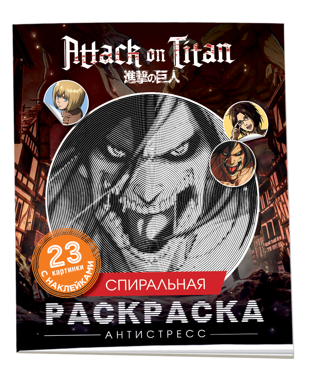 Атака титанов. Спиральная раскраска-антистресс с наклейками
